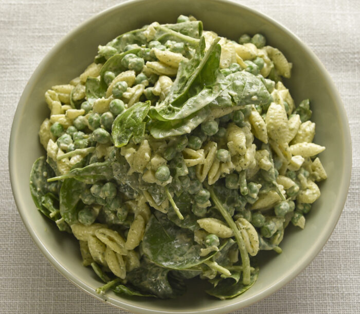 Crunchy Creamy Pesto, Pasta & Pea Salad